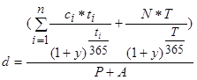 4. Дюрация выпуска (средневзвешенный срок получения всех денежных выплат по облигациям) рассчитывается по следующей формуле: