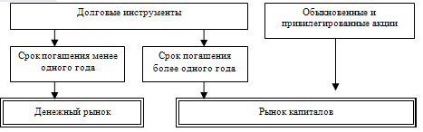 Рисунок 2. Классификация финансовых рынков по срокам погашения прав на активы.