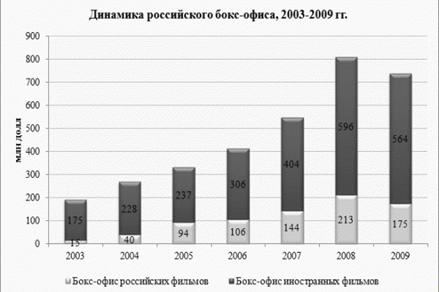 фильмам. Возможно, поэтому более распространены фильмы с меньшим бюджетом, ставка в которых делается в основном на талантливость игры и режиссуры, нежели на спецэффекты и использование самых современных технологий. Хорошим примером может служить фильм "Питер - FM", на съемку которого ушло всего 470 тысяч долларов. Логика простая – вероятность получить огромную прибыль при 500 экранах и бюджете $500 тыc. гораздо выше, чем при аналогичном количестве экранов и бюджете в $5 млн.