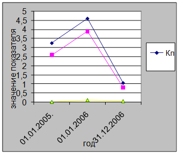 -дальнейший анализ предприятия указывает на усиление зависимости его от внешних источников финансирования и снижении той части капитала предприятия, которая является источником покрытия текущих активов предприятия, а это негативная тенденция. Анализируя данные, полученные за 2005-2006 гг., можно сделать вывод, что произошло перераспределение средств, значительно увеличивают свою долю заемные средства на 32,9% (в абсолютном изменении заметно увеличение на 10558 тыс. руб.), а собственные средства снизились на 32,9% (10035 тыс. руб.).