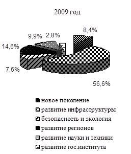 К внебюджетным источникам привлекаемым для финансирования целевых программ, могут относиться: взносы участников реализации программ; целевые отчисления от прибыли предприятий, заинтересованных в осуществлении программ; кредиты банков, средства фондов и общественных организации, зарубежных инвесторов, заинтересованных в реализации программ, и другие поступления. Источником финансирования целевых программ могут являться инвестиционные и конверсионные кредиты, а также целевые кредиты банков под государственные гарантии [14]. В 2010 году в рамках федеральных целевых программ осуществляется: поддержка реформ в сфере образования и здравоохранения; реформа судебной системы; формирование рынка доступного жилья; модернизация АПК и создание условий для его устойчивого развития; строительство и совершенствование стратегически важных для страны объектов транспорта; поддержка государством реализации крупных транспортных инфраструктурных проектов; осуществление инновационных проектов и программ технологического профиля; поддержка секторов экономики с высоким инновационным потенциалом (авиационно-космическая промышленность, информационно-коммуникационные технологии) и др.