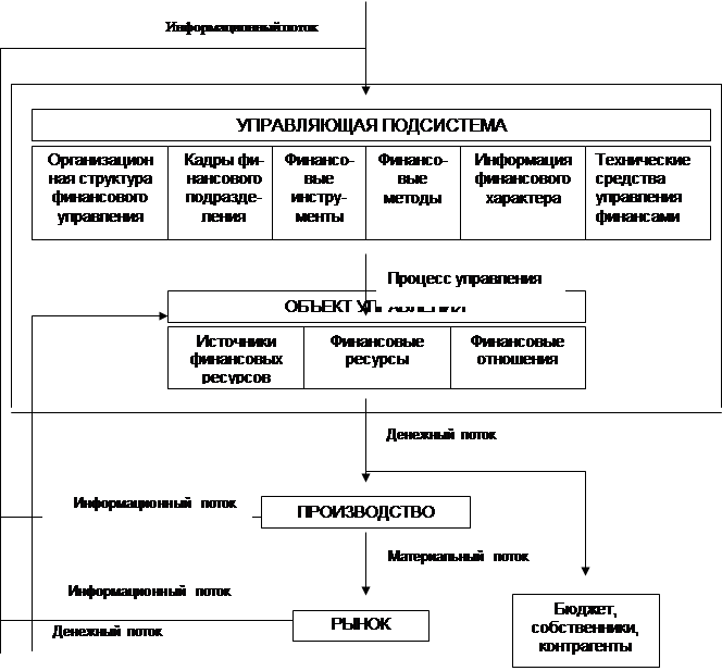 Финансовый менеджмент как система управления состоит из двух подсистем: управляемой подсистемы, или объекта управления, и управляющей подсистемы или субъекта управления. Схематично это можно представить следующим образом