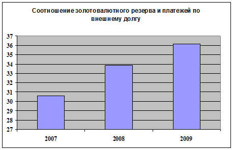 Рис. 8. Соотношение золотовалютного резерва и платежей по внешнему долгу
