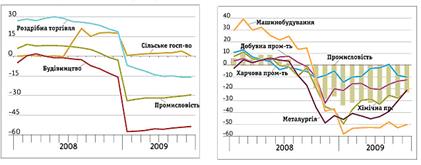 2. Було зафіксовано суттєве зниження економічної активності у секторах, орієнтованих на експорт, і у секторах, що залежать від кредитних ресурсів(Додаток 1).