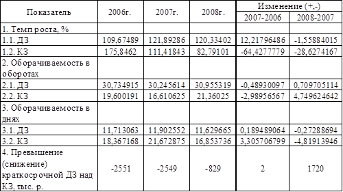 Как видно из расчетов, представленных в таблице 3, наибольший удельный вес в составе оборотных активов предприятия занимают запасы. Однако в динамике их удельный вес сокращается. Так на начало исследуемого периода их доля составляла 58 %, а к концу 2008 года – 49,6 %.