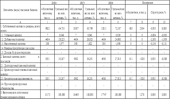 Изменения произошли также в структуре пассивов баланса – источников формирования активов предприятия (табл. 8).