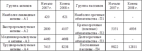 Группировка активов по уровню их ликвидности и обязательств по срочности их оплаты