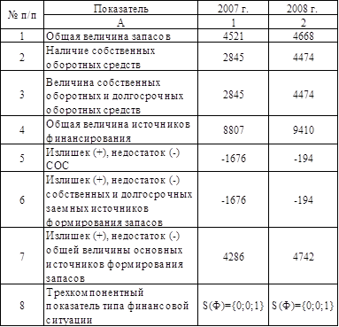 Расчет показателей для определения типа финансовой устойчивости