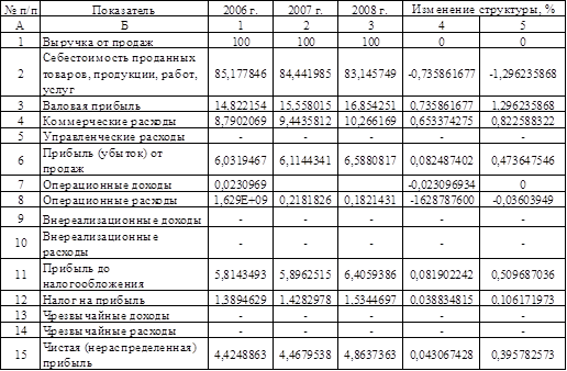 Структурно-динамический анализ основных элементов формирования конечных финансовых результатов деятельности