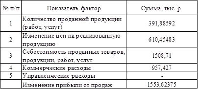 Сводная таблица влияния факторов на прибыль от продаж отчетного периода
