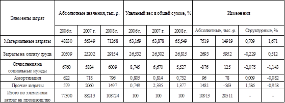 Анализ затрат предприятия по элементам