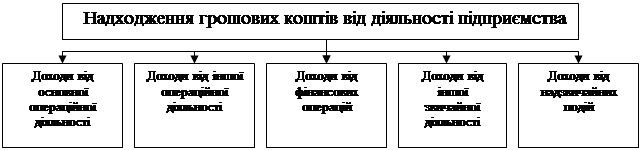 Відповідно й грошові надходження від звичайної діяльності підприємств включають доходи від: