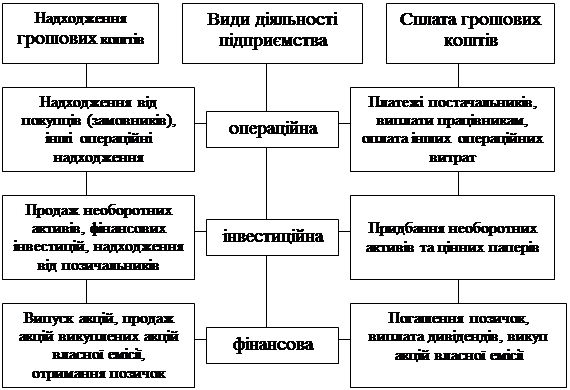 Рис.1.2. Рух грошових потоків в результаті різних видів фінансово господарської діяльності підприємства