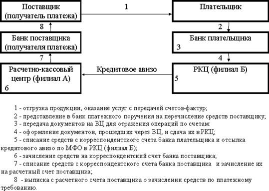 Рис. 3. Схема документооборота при расчетах чеками с грифом “Россия” (во внутригородском, местном обороте)