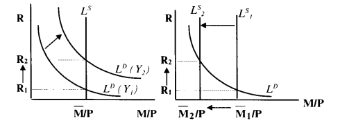 Классическая теория связывает спрос на деньги с реальным доходом. Кейнсианская теория считает основным фактором ставку процента. Издержки при хранении денег в виде наличности равны проценту, который можно было бы получить, положив деньги в банк или использовав их на покупку финансовых активов, приносящих доход. Чем выше ставка процента, тем больше мы теряем потенциального дохода, тем выше альтернативная стоимость хранения денег в виде наличности, а значит, тем ниже спрос на наличные деньги.