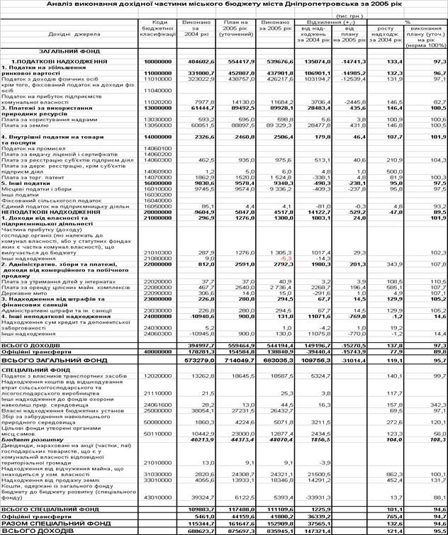 3.2 Аналіз звіту про виконання бюджету м. Дніпропетровська за 2004 - 2005 роки