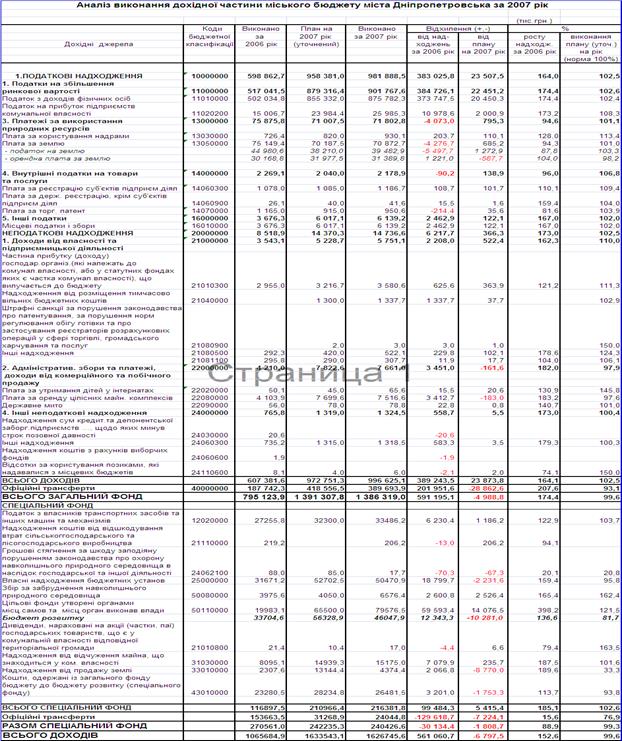 3.4 Аналіз звіту про виконання бюджету м. Дніпропетровська за 2006 - 2007 роки