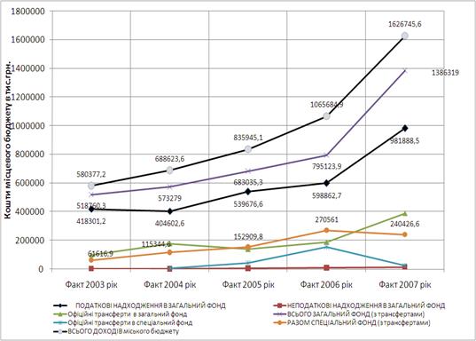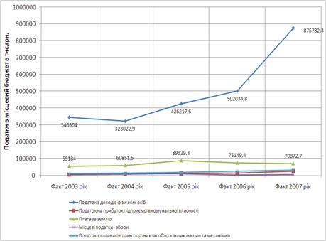 4. Аналіз динаміки структури та обсягів доходів в місцевий бюджет м. Дніпропетровська у 2003 -2007 роках