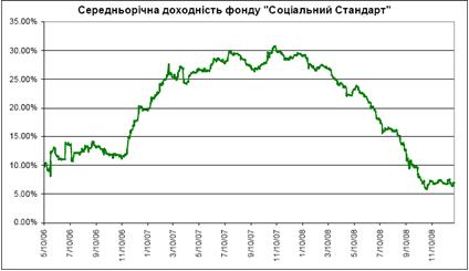 Фондовий ринок України за звітний рік впав на 74,3%, пропустивши вперед лише Ісландію (-94%) і Болгарію (-80%). Значення спреду EMBI+Ukraine, який сигналізує про відношення нерезидентів до нашої країни, на кінець року склало 2735. Безумовно, все це не могло не відобразитися на діяльності пенсійного фонду «Соціальний стандарт». Так, його дохідність з початку року склала -35,4%. Композиційний індекс, який є еталоном для порівняння діяльності фонду, за цей же час впав на 59,9%.