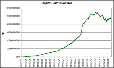На кінець першого кварталу 2009 року вартість чистих активів фонду склала 9 705 886, 58 грн., зменшившись на 3 173,17 або на 0,03%.