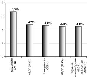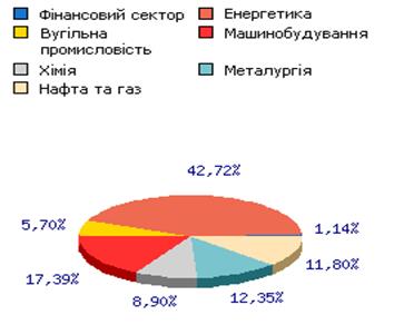 2. Розподіл акцій з портфелю фонду «Соціальний стандарт» за галузями виглядає наступним чином (мал. 6):