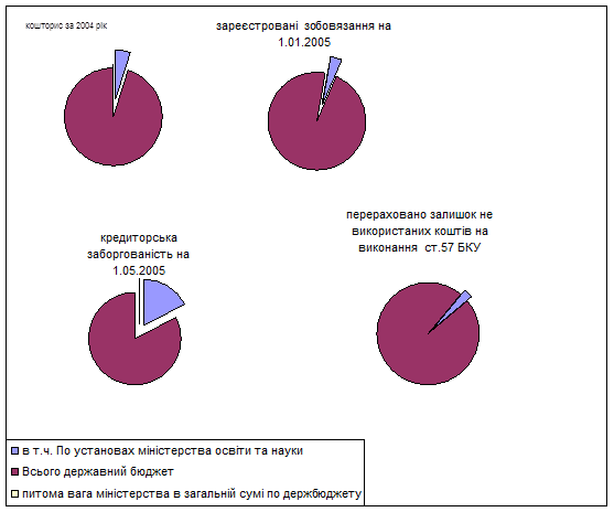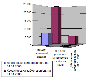 Аналіз відволікання бюджетних коштів на прикладі дебіторської та кредиторської заборгованості на 1.05.2005р. по Луганській області в цілому та установах міністерства освіти та науки у тому разі.