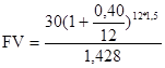 j = m[(1 + i)1/m - 1] = 4[(1 + 0,25)1/12 - 1] = 0,22523