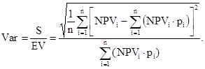 Коэффициент вариации . Коэффициент вариации (Var) является широко применяемым показателем проектного риска. Коэффициент вариации определяется по формуле: