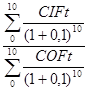 где: r- норма дисконта, t- число периодов реализации проекта, FCFt- чистый денежный поток в периоде t, CIFt- суммарные поступления от проекта в периоде t, COFt- суммарные выплаты по проекту в периоде t.