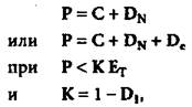 где С — себестоимость (сметные издержки) производства соответствующего инновационного продукта; DN — прибыль, устанавливаемая в процентах к его себестоимости; De — прибыль, рассчитываемая в процентах от суммы экономического эффекта (положительного сальдо денежных потоков) заказчика (потребителя), получаемого от реализации данного продукта за период, согласованный сторонами; К — наибольшая допустимая доля цены инновационного продукта в сумме экономического эффекта от его применения у заказчиков, потребителей; ЕT — экономический эффект от производства и применения данного продукта за расчетный период; DI — доля экономического эффекта, реализуемого у заказчиков и обеспечивающая сохранение у них прежнего уровня рентабельности производства.