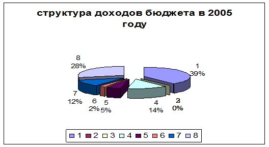 Проанализируем исполнение доходной части бюджета за 2005 год. При сравнении исполнения с уточненным планом первого полугодия наблюдается перевыполнение плана на 5,75%.