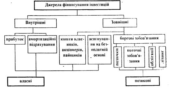 1.2 Джерела фінансування інвестицій на підприємстві.