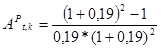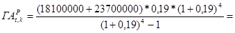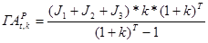 де АP t, k – стандартне сучасне (поточне) значення ануїтету 1 грошової одиниці (ануїтет-фактор) за t років при ставці дисконтування k, рівної вартості кредитних ресурсів у частках одиниці.