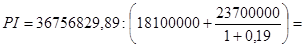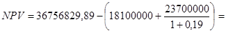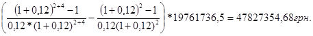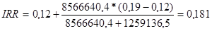 Так як k2 =0,19 і NPV2 = - 1259136,5 грн., то визначимо значення k1 , при якому NPV1 >0. Припустимо, що k1 = 0,12, тоді: