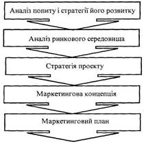 Після ідентифікації зони «продукт — цільова група», визначення обсягів продажу початкового і заключного років функціонування проекту необхідно розробити стратегію маркетингу.