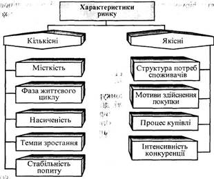 Аналіз ринку починають зі складання його детальної характеристики. Однією з найважливіших кількісних характеристик ринку є його місткість, тобто такий обсяг товарів, який покупці певного регіону можуть придбати протягом заданого часового інтервалу, наприклад за місяць. На величину місткості ринку впливає значна кількість факторів, у тому числі національних, соціальних, демографічних, географічних та економічних. Однак найбільш істотний вплив на величину місткості ринку має спектр економічних детермінант: рівень доходів споживачів, структура їх витрат, рівень життя, наявність накопиченого багатства, темпи інфляції. Різниця між місткістю ринку і обсягом ринкового попиту визначає перспективність ринку товарів, що дозволяє спрогнозувати обсяги продажу при підготовці проекту.