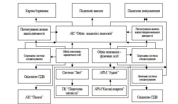 Структура та функціональні завдання ДПА України. Згідно Закону України “Про державну податкову службу України” [7] до системи органів державної податкової служби належать: Державна податкова адміністрація України, державні податкові адміністрації в Автономній Респуб-ліці Крим, областях, містах Києві та Севастополі, державні податкові інспекції в районах, містах (крім міст Києва та Севастополя), районах у містах (далі – ор-гани державної податкової служби).