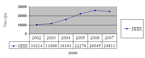 Рис. 2.2 - Доходи Державного бюджету за рахунок податку на прибуток підприємств. По базовому підприємству в 2004 році податок на прибуток не був сплачений – підприємство отримало збитки згідно податкового обліку у розмірі 34,7 тис. грн., в 2005 році об'єкт оподаткування становив 0,4 тис. грн. податок на прибуток за повною ставкою сплачено у сумі 0,1 тис. грн., в 2006 році об'єкт оподаткування склав 3,9 тис. грн., нарахована сума податку за даний період 1,0 тис. грн.(Додатки З,К,Л) Якщо брати до уваги фінансові результати згідно даних фінансового обліку то згідно фінансової звітності підприємство отримало прибуток лише в 2005 році – 3,5 тис. грн.. В 2004 та 2006 роках підприємство працювало збитково і прибутку не мало (Додатки Б, Г, Ж).