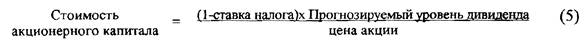 Применяя данную формулу в отечественной практике, отметим два существенных, на наш взгляд, момента. Во-первых, в условиях нестабильности политики и экономики предугадать уровень дивиденда достаточно проблематично. Во-вторых, если в международной практике дивиденды выплачиваются из прибыли, оставшейся после вычета налогов, то у нас доходы в виде дивидендов, полученных по акциям, подлежат налогообложению отдельно по ставке 15%.