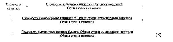 Таким образом, формула средневзвешенной стоимости капитала будет иметь такой вид: