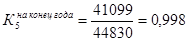 По данным показателям видно, что ни один коэффициент не соответствует норме, баланс является неудовлетворительным, исходя из этого, рассчитываем коэффициент возможного восстановления (7):