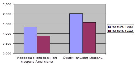 Организацию относят к определенному классу надежности на основе значений Z-индекса модели Альтмана. Пятифакторная модель Альтмана построена на основе анализа состояния 66 фирм и позволяет дать достаточно точный прогноз банкротства на два-три года вперед. Построение в российских условиях подобных моделей достаточно сложно из-за отсутствия статистических данных о банкротстве организаций, постоянного изменения нормативной базы в области банкротства и признания банкротства организации на основе данных, не поддающихся учету.