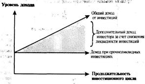 Чем ниже ликвидность объекта инвестиций, тем выше должен быть размер инвестиционного дохода или премии за ликвидность (liquidity premium). Графически эта зависимость представлена на рисунке 3.