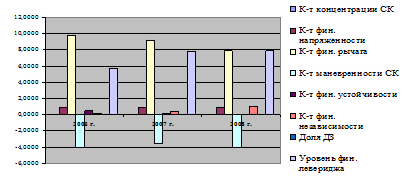 - полученные значения Z-счета, согласно данной методики, в 2006 и 2007 годах ниже нормативного, т.е. в тот период риск банкротства можно охарактеризовать как средний;