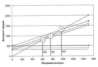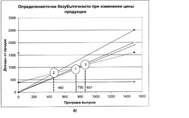 4)кількість виробів в точці беззбитковості при розглянутих вище різних вихідних припущеннях вагається від 589 до 858 одиниць продукції.