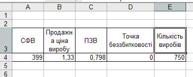 5.2.Вживання засобу «Підбір параметра» для визначення і побудови точки беззбитковості при зміні ціни продукції.