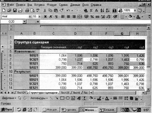 1. Активізуйте робочий аркуш, що містить звіт про сценарії.