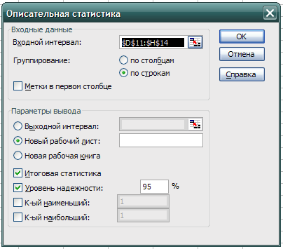 8. Встановите прапорці опцій Підсумкова статистика і Рівень надійності. Натискуйте на кнопку ОК.