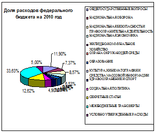 В 2010 году произойдут изменения доли расходов в процентном соотношении от общего объема расходов. Неизменными лидерами остаются межбюджетные трансферты и общегосударственные вопросы на 3 месте будет национальная безопасность и правоохранительная деятельность , ана 4 месте национальная оборона .