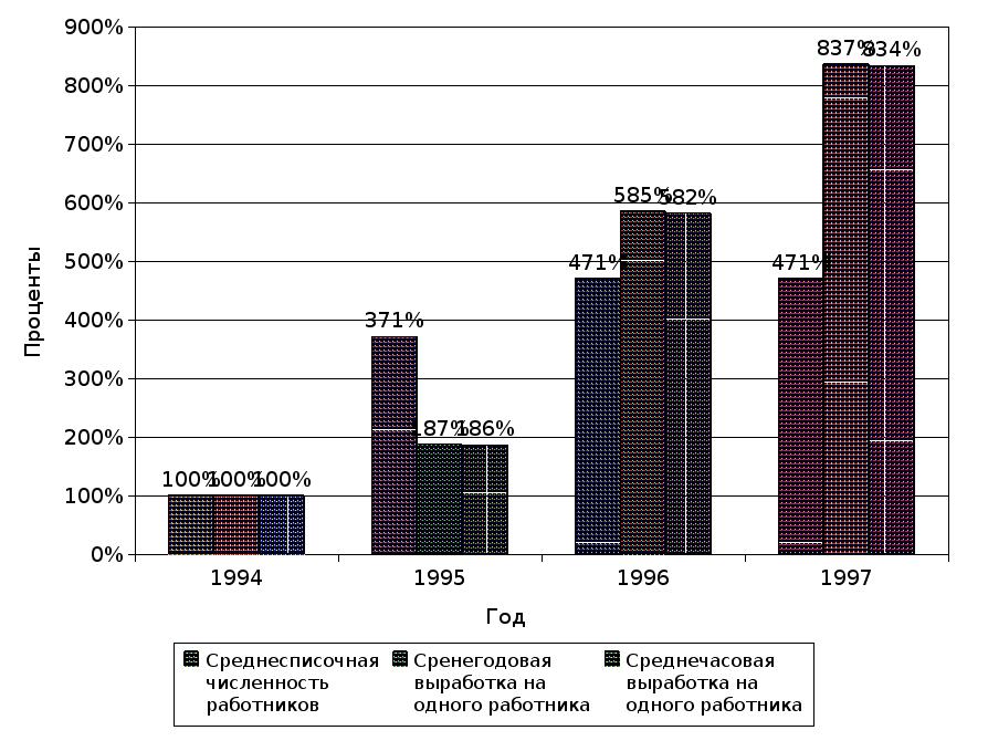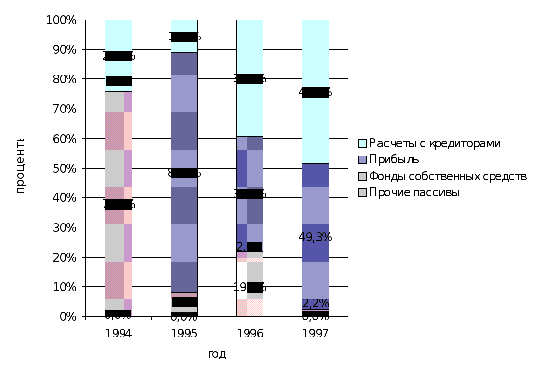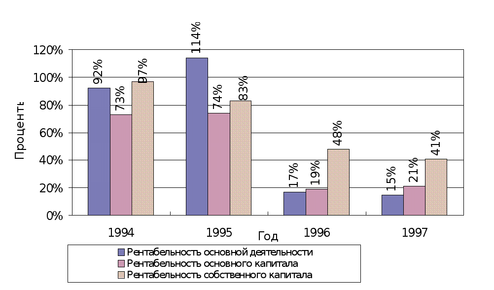 В 1997 году увеличилась прибыль по сравнению с 1994, 1995 годами. Стабилизируются потоки денежных средств. Их структура становится более рациональной .
